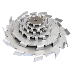 分散盤是配套于高速分散機的配件,連接于高速分散機主軸。分散機主軸高速運轉(zhuǎn)時,分散盤上下方呈現(xiàn)旋轉(zhuǎn)狀態(tài),同時會在邊緣2.5-5mm處形成湍流區(qū)。分散盤上下鋸齒對涂料、油漆、干粉、固—液等物料進行高速的剪切、撞擊、粉碎、分散,以便達到迅速混合、溶解、分散、細化的狀態(tài)。
