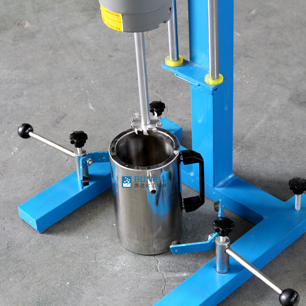 設(shè)備帶有鎖緊及升降手柄,能夠快速升降和固定;分散盤采用內(nèi)六角螺栓與主軸固定,能夠方便快速拆卸更換,清洗容易;帶有夾桶裝置,可以快速將攪拌桶固定,防止桶在工作中發(fā)生位移造成安全事故。