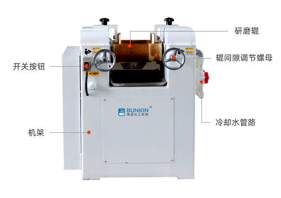 三輥研磨機(jī)適用于需要分散而細(xì)度要求較高的膏體或高粘度物料使用;通過水平的三根輥筒的表面相互擠壓,手搖式調(diào)節(jié)輥筒之間的間距,以不同速度的摩擦達(dá)到研磨效果。裝有緊急制動(dòng)按鈕,防止落入異物導(dǎo)致的設(shè)備損壞。輥?zhàn)邮褂锰厥庥操|(zhì)合金澆鑄而成,也可以使用純氧化鋯材質(zhì)。