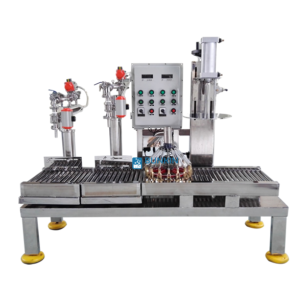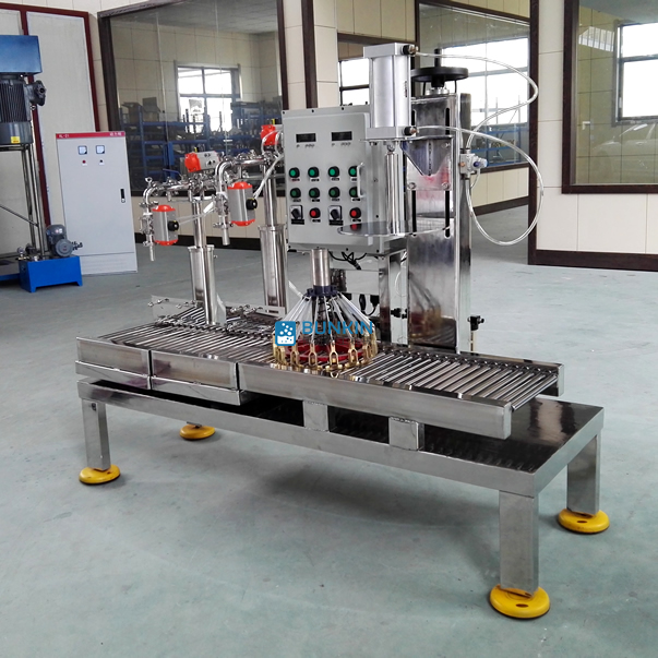 雙頭半自動(dòng)灌裝機(jī)采用重量法計(jì)量,通過稱重傳感器輸出信號(hào)控制進(jìn)料閥的開度以實(shí)現(xiàn)自動(dòng)灌裝的目的。進(jìn)料口前端配有進(jìn)料泵或者原料儲(chǔ)罐加壓的方式將物料從罐體送至灌裝機(jī),在灌裝前可以增加過濾裝置去除雜質(zhì),保證產(chǎn)品質(zhì)量;該設(shè)備具有灌裝效率高、灌裝誤差小的優(yōu)點(diǎn),在涂料、油墨、油漆、瀝青、膠水、潤(rùn)滑油、石油化工、精細(xì)化工等行業(yè)有廣泛的應(yīng)用,不僅適合流體的灌裝,同樣適合膏體產(chǎn)品的灌裝。