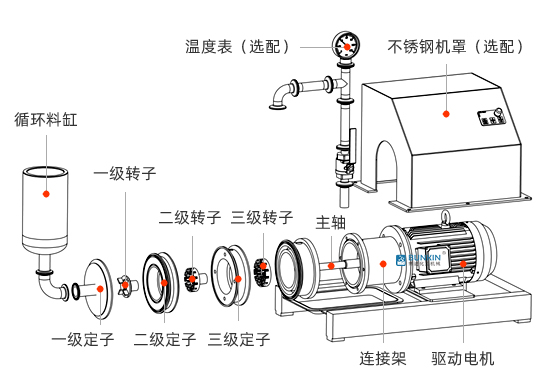 轉(zhuǎn)定子采用鍛件材料、CNC加工中心精密加工,轉(zhuǎn)定子間隙極小,剪切極限細(xì)度好,乳化分散效率高,提高產(chǎn)品的使用壽命,雙端面機(jī)械密封結(jié)構(gòu)的獨特設(shè)計,無泄漏,減少維護(hù)成本,清洗用溶劑自循環(huán),方便衛(wèi)生。