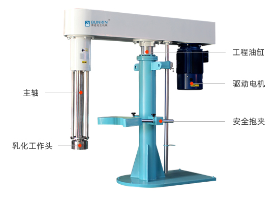 液壓升降乳化機是通過機械外力作用的方法使液-液、固-液物料顆粒粒徑變窄,使一種相均勻分布到另一種或多種相中,達到細化均質(zhì)、分散乳化效果,從而形成穩(wěn)定的乳狀液的狀態(tài)。液壓升降乳化機工作頭由不銹鋼鍛件精制而成,根據(jù)不同乳化要求設(shè)備多種工作頭結(jié)構(gòu),液壓升降乳化機通過液壓控制升降。
