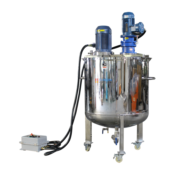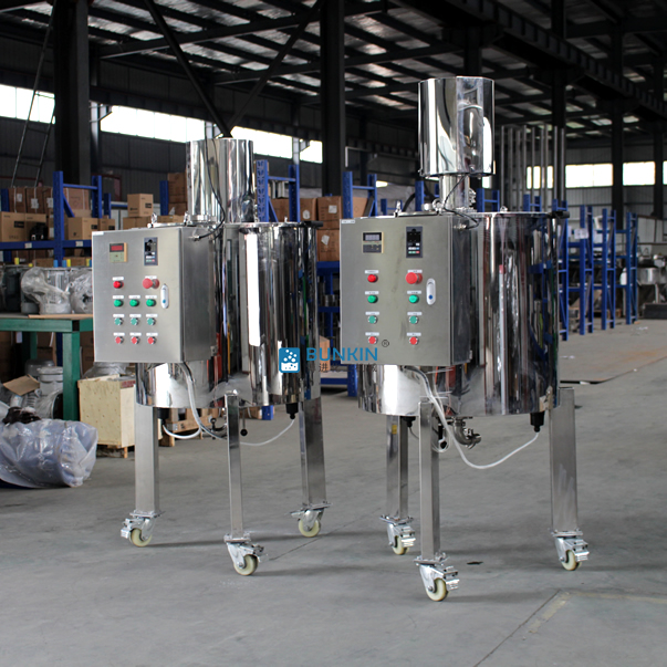 乳化罐的作用是將一種或多種物料(水溶性固相、液相或膠狀物等)溶于另一種液相,并使其水合成為相對穩(wěn)定的乳化液。廣泛適用于食用油類、粉類、糖類等原輔料的乳化混合,某些涂料、油漆乳化分散也使用乳化罐,尤其適用于某些難溶膠狀類添加劑如CMC、黃原膠等。