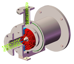 單級(jí)高剪切乳化泵采用臥式結(jié)構(gòu)。在狹長的工作腔內(nèi)裝有一組轉(zhuǎn)定子,轉(zhuǎn)定子可設(shè)計(jì)成單級(jí)兩層或者單級(jí)六層結(jié)構(gòu),轉(zhuǎn)定子對(duì)偶耦合。由電機(jī)帶動(dòng)中間軸進(jìn)行高速運(yùn)轉(zhuǎn),轉(zhuǎn)定子形成真空,物料從進(jìn)口被吸入轉(zhuǎn)定子腔內(nèi),強(qiáng)大動(dòng)能使轉(zhuǎn)子產(chǎn)生極高的線速度,使物料在轉(zhuǎn)、定子間隙之間經(jīng)過強(qiáng)烈的撞擊、破碎、離心擠、液層摩擦、強(qiáng)力剪切之后飛射出去,在多種不同方向力的作用下,產(chǎn)生強(qiáng)大紊流,物料從出口流出。并可根據(jù)工藝要求進(jìn)行多次循環(huán)處理。