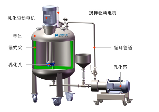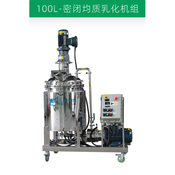 均質(zhì)乳化機(jī)組是集低速刮壁攪拌、高剪切乳化泵、循環(huán)管道、真空密閉系統(tǒng)、電路控制等設(shè)備相輔相成而組合成的較好的密閉型均質(zhì)乳化設(shè)備。設(shè)備可根據(jù)客戶需求,定制各種規(guī)格的真空密閉、加熱或冷卻、電控等功能于一體的均質(zhì)乳化機(jī)組,滿足實(shí)驗(yàn)室和生產(chǎn)的需求。
