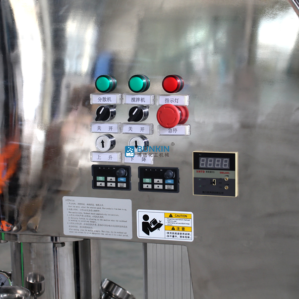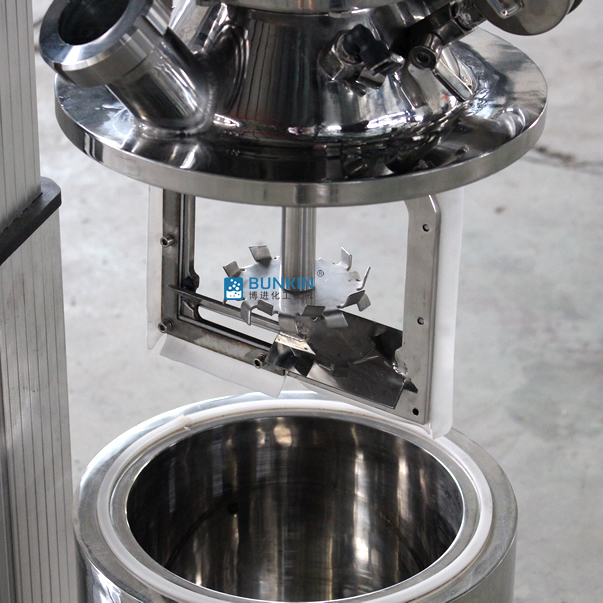 同心雙軸液壓分散機攪拌漿葉在動力機組的驅(qū)動下,沿固定方向旋轉(zhuǎn);在旋轉(zhuǎn)過程中,驅(qū)使物料做軸向旋轉(zhuǎn)和徑向旋轉(zhuǎn)。攪拌機內(nèi)的物料,同時存在軸向運動和圓周運動,因而同時存在剪切攪拌和擴散攪拌等幾種攪拌形式。在攪拌槳上裝有刮刀,緊貼桶壁刮拭,刮刀隨著攪拌器旋轉(zhuǎn)時把桶壁的物料完全刮掉,使桶壁無滯留料,同時提高混合效果。分散盤通過高速運轉(zhuǎn),使物料呈環(huán)狀流,產(chǎn)生強旋渦,呈螺旋狀下降到渦流底部。粒子間產(chǎn)生強烈的剪切撞擊與磨擦,達到迅速分散、溶解功能。攪拌盤通過圓周運動,產(chǎn)生較好的徑向作用里,加速物料循環(huán),提高分散效率,液壓升降攪拌機通過液壓泵工作驅(qū)動液壓柱塞升降,帶動整個傳動機構(gòu)和工作組升降。