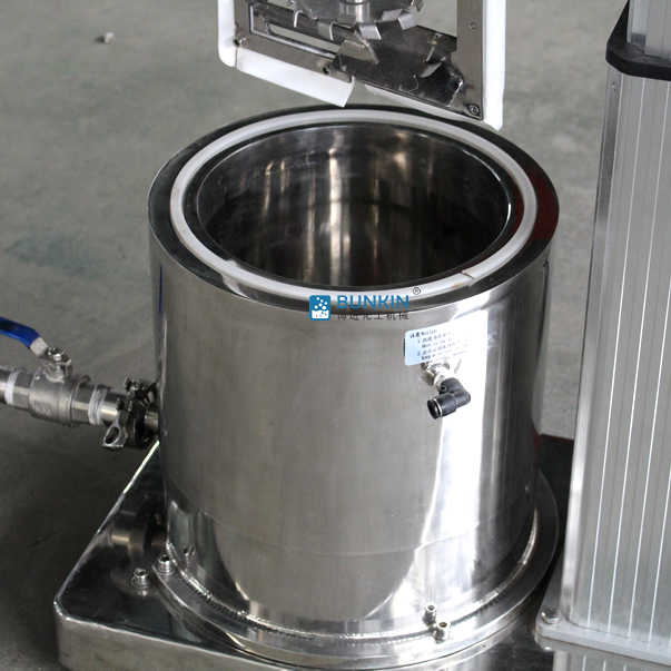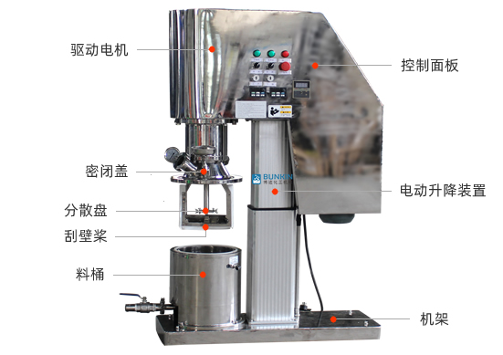 設備通過油缸作為升降執(zhí)行器,帶控制閥控制工作頭上升、停止、下降,操作簡單,穩(wěn)定性高;攪拌槳與主軸之間采用固定螺栓固定,方便拆卸更換,清洗容易;帶有不同的抱夾方式(皮帶、手搖、氣動),可以快速將攪拌桶固定,防止桶在工作中發(fā)生位移造成安全事故。